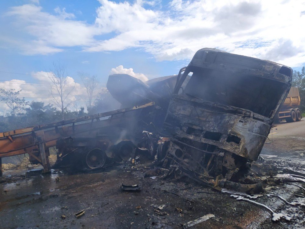 Segundo informações do motorista do outro caminhão que sobreviveu ao acidente, o caminhão da Jaruense colidiu frontalmente com seu veículo ao ser ultrapassado no sentido Rondônia. O impacto causou grande destruição e os dois veículos pegaram fogo