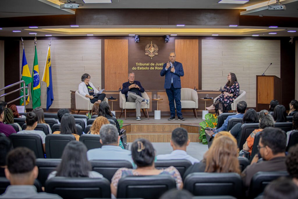 O 7 de abril no Judiciário de Rondônia teve auditório lotado, de jornalistas, acadêmicos de Jornalismo e, também, parte do grande público que acompanhou o trabalho de Pinheiro na televisão. Na abertura da solenidade, Simone Norberto, jornalista do TJRO destacou a importância do evento: “nada melhor do que conhecimento para presentear quem está sempre em busca de aprendizado e valiosas experiências profissionais como as do nosso convidado desta noite”. A juíza auxiliar da Presidência, Karina Sobral, enalteceu o trabalho dos comunicólogos e o presidente Raduan reiterou a disposição do TJRO de parceria e colaboração com a imprensa, para que os serviços da Justiça sejam mostrados aos(às) cidadãos(ãs).