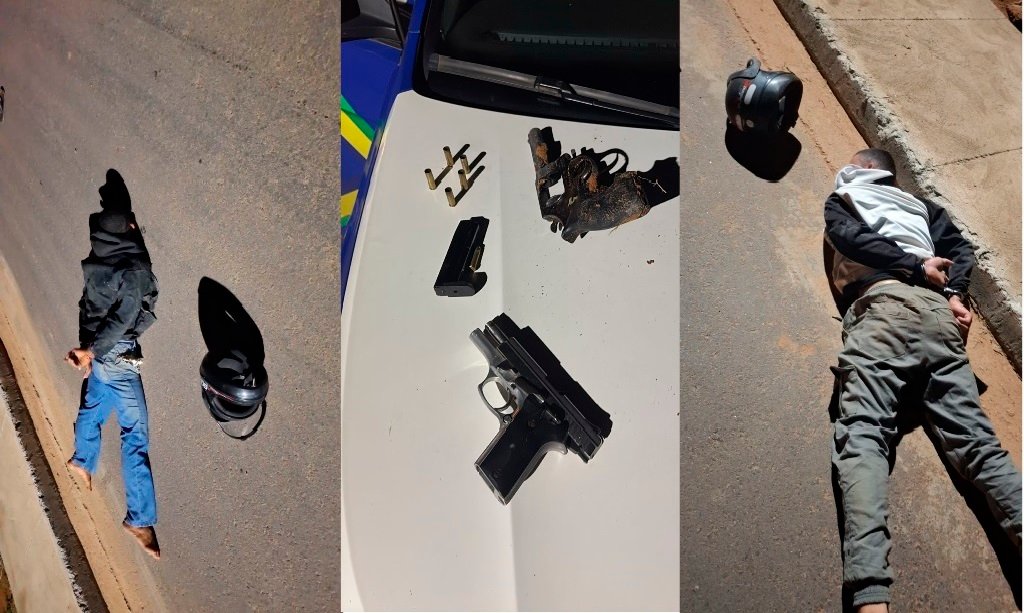 Os policiais realizaram o devido acompanhamento tático até a saída da cidade, já próximo ao cemitério municipal Campo Santo. Durante a ação, no momento em que a viatura conseguiu reduzir a distância em relação aos suspeitos, um dos indivíduos sacou um revólver, situação que exigiu resposta imediata e proporcional da guarnição, diante do iminente risco à vida.