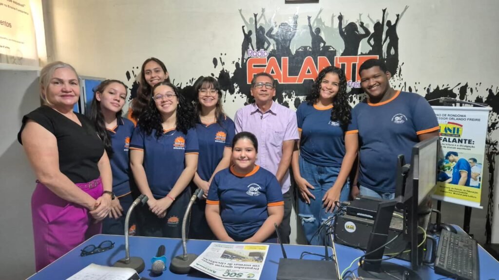 Na terça-feira (30), as estudantes da escola estadual Brasília de Porto Velho-RO, acompanhadas da gestora do colégio, visitaram e participaram de uma entrevista no estúdio da Rádio Falante da escola Orlando Freire.