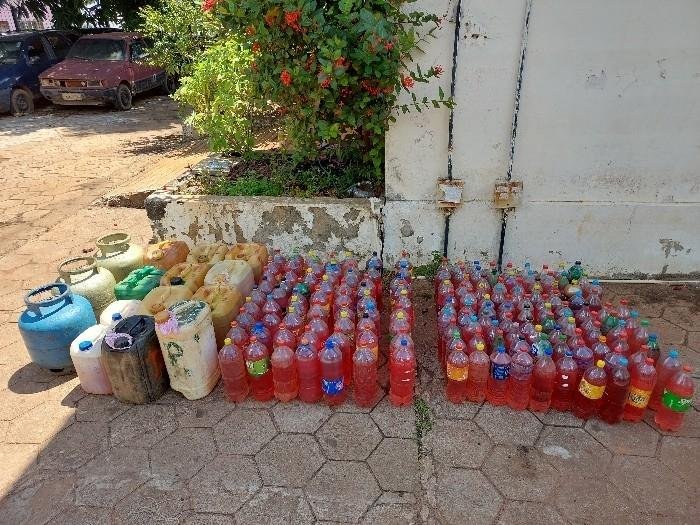 Durante o patrulhamento, os policiais surpreenderam indivíduos, brasileiros, que tentavam se evadir ao perceber a aproximação da guarnição. Dois suspeitos foram detidos no local enquanto manuseavam sacos e galões de combustível, além de botijas de gás. O material apreendido continha gasolina e botijas cheias, totalizando 601 litros de combustível e três botijas.
