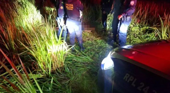 A perícia encontrou o facão na mão da vítima e uma espingarda calibre 20 próxima ao corpo.