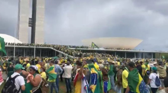 Manifestantes subiram a rampa do Congresso Nacional e ocuparam o teto do Parlamento neste domingo, 8. O grupo saiu do Quartel General do Exército de Brasília, a quase 8 quilômetros dali, em direção à sede do Legislativo.