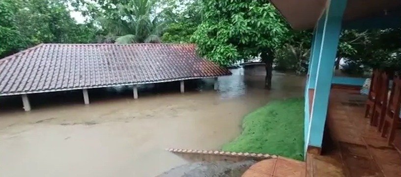 Ruas e estradas de Campo Novo de Rondônia (RO) ficaram alagadas devido a um forte temporal no município nesta terça-feira (07/03).