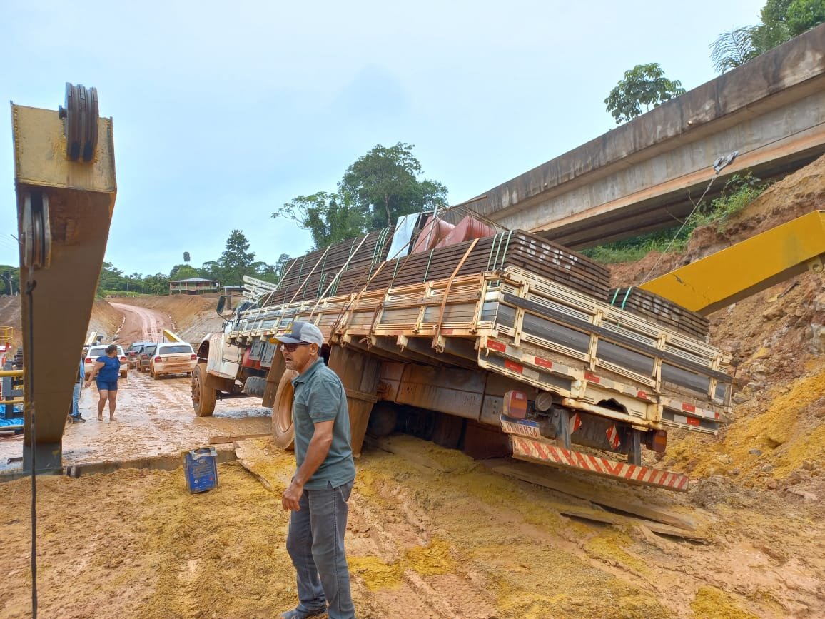 Nesse caso da foto, por exemplo, a rampa de embarque da balsa apresentou problemas e o caminhão por muito pouco não caiu nas águas com o motorista, fato que deixou os moradores ainda mais revoltados.