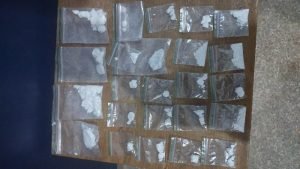 Na madrugada desta quinta-feira (08), uma guarnição da Polícia Militar avistou um veículo VW Gol, cor prata, saindo de uma residência na rua H1, bairro Cohab. Ao perceber a aproximação policial, o condutor, identificado pelas iniciais R. R. O., 23 anos, apresentou comportamento suspeito e acelerou bruscamente, tentando evitar a abordagem. Ao perceberem que não conseguiriam fugir, um dos ocupantes arremessou um invólucro contendo quatro porções de substância semelhante à cocaína.