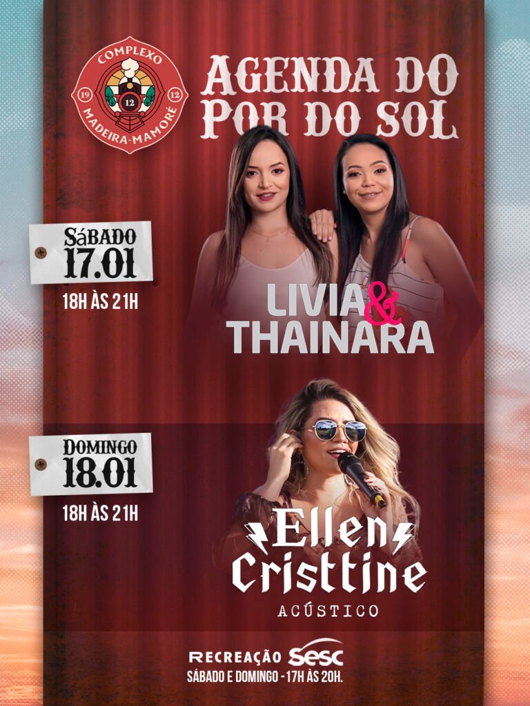 O Complexo da Estrada de Ferro Madeira-Mamoré realiza, nos dias 17 e 18 de janeiro, mais uma edição do Pôr do Sol Musical, com apresentações gratuitas que integram música, lazer e o cenário do entardecer às margens do rio Madeira. A programação ocorre no Palco Pôr do Sol e é aberta ao público.