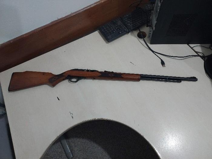 Durante buscas no imóvel, foram encontrados um rifle calibre .22 e munições de diferentes calibres, incluindo 9mm, .22, .38 e .380, sem documentação legal.