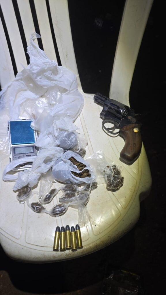 Simultaneamente, outra guarnição deslocou-se até a residência monitorada, onde conseguiu deter D. R. T. C. (“Menor Tralha”) e M. S. M. (“Monstrinho”), que estavam de posse de um revólver calibre .38, com cinco munições intactas.