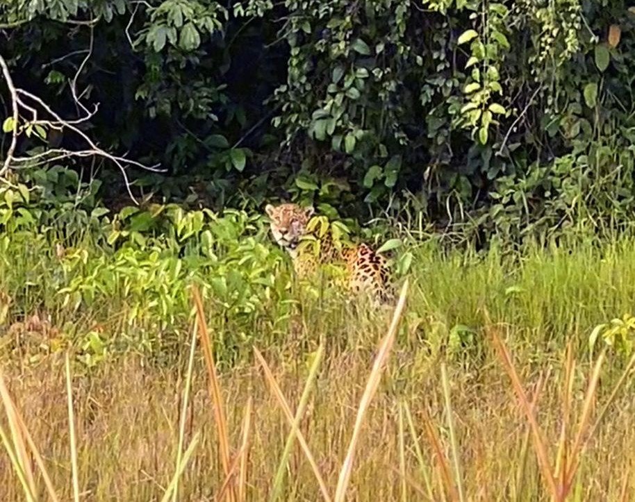 Próximo a um posto base da unidade de conservação, a guarnição avistou uma onça-pintada em seu habitat natural. O animal, aparentemente no início da vida adulta, chamou a atenção pela imponência e pela beleza característica da espécie, símbolo da fauna brasileira.