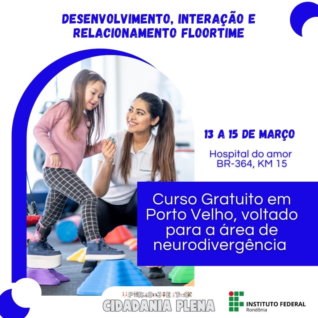 nicia no Hospital de Amor, em Porto Velho, nesta sexta-feira (13) e segue até o próximo domingo, dia 15, o curso Desenvolvimento, Interação e Relacionamento Floortime, oferecido através do projeto Cidadania Plena, iniciativa do Ifro que é custeado com investimentos do mandato da deputada federal Silvia Cristina.